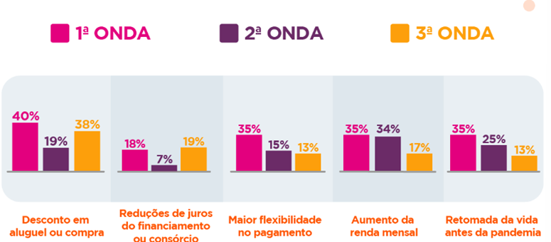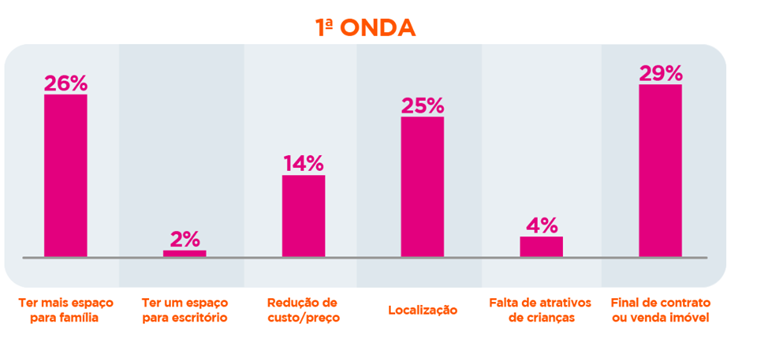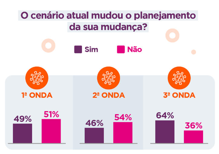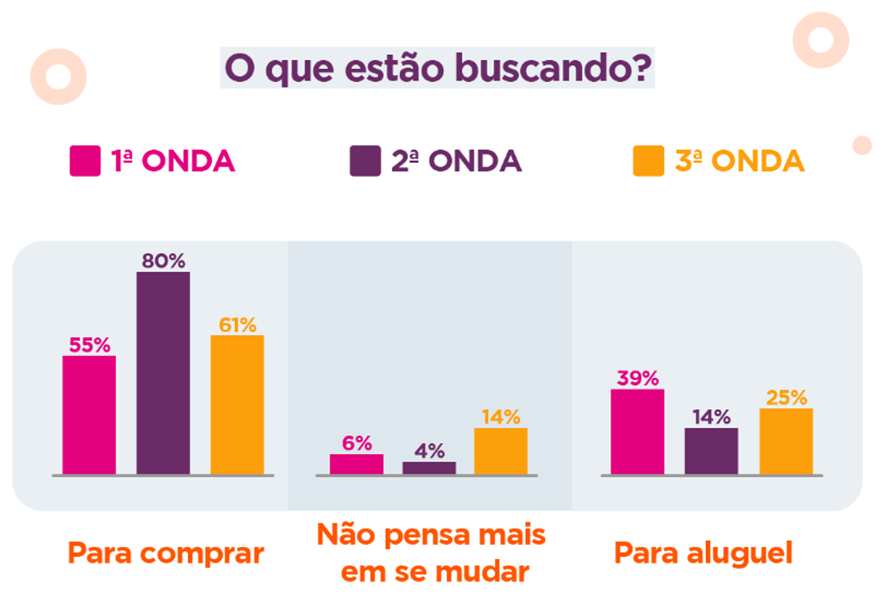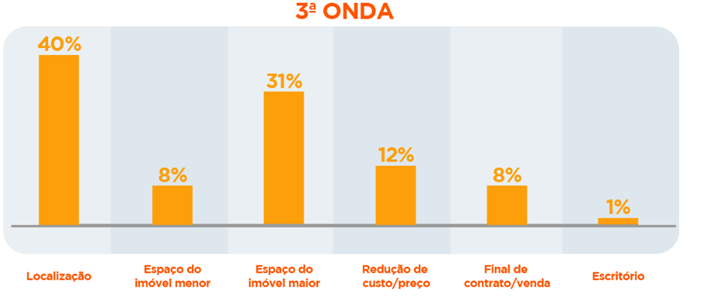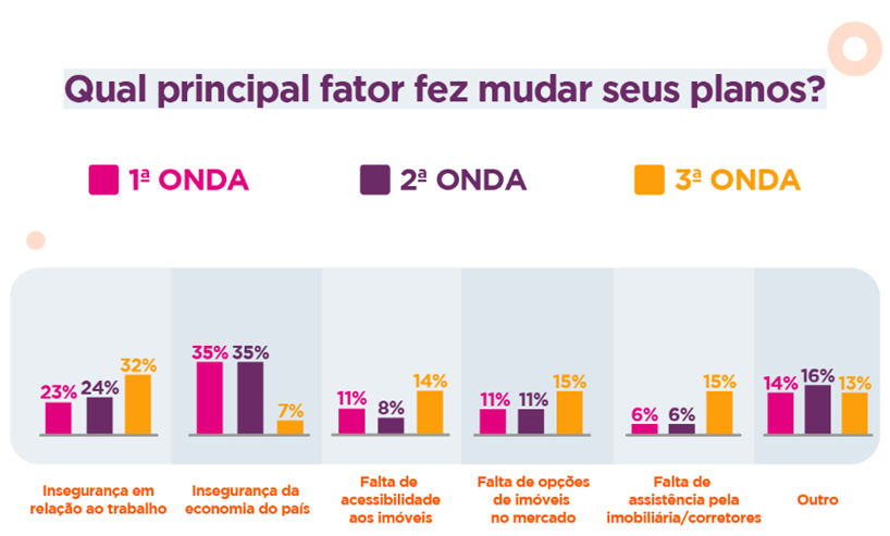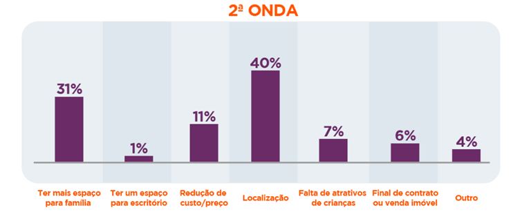 Para os usuários que pretendem mudar, hoje 38% têm a intenção de trocar de casa em até 6 meses, contra 52% dos respondentes na primeira onda. A outra metade dos entrevistados acredita que a atual situação mudou os planos: 7% responderam que a economia do Brasil impactou essa decisão, outros 32%culpam a insegurança no emprego atual.