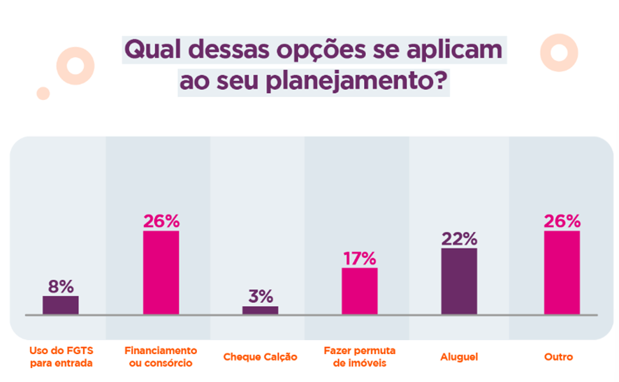 De acordo com a pesquisa realizada pelo Imovelweb, quem pretende se mudar e entende que a situação atual não mudou seus planos ainda conta com métodos de pagamento tradicionais, tais como uso do FGTS e o consórcio.